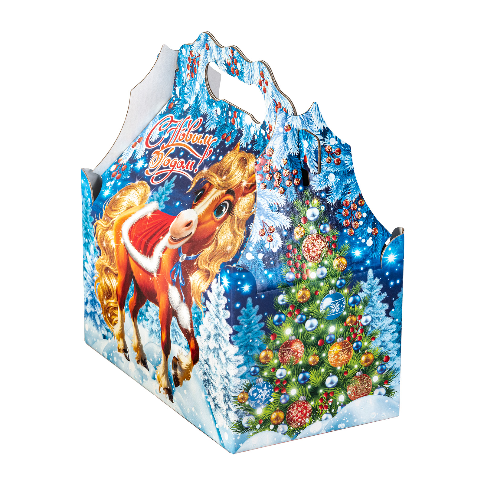 Новогодние сладкие подарки с изображением символа года - это классика на все времена. Подарочный набор “Мигель” - это компактная картонная упаковка с ярким креативным оформлением. Тишину сонного зимнего леса внезапно нарушил стук копыт - это прибыл из своей волшебной страны огненно-рыжий конь. Он принес с собой множество подарков для своих новых друзей, а также счастье и везение на весь наступающий год. В состав подарка входят самые разнообразные лакомства, даже самый привередливый сластена сможет найти себе что-то по вкусу. Подарок одинаково подойдет как для ребенка, так и для взрослого.